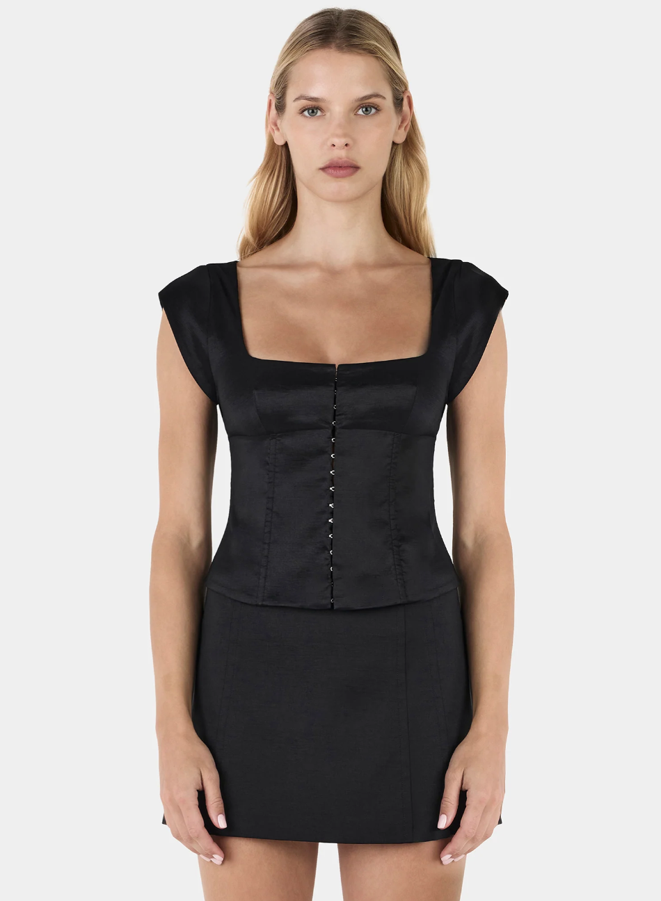 Monica Taffeta Corset Top // Black